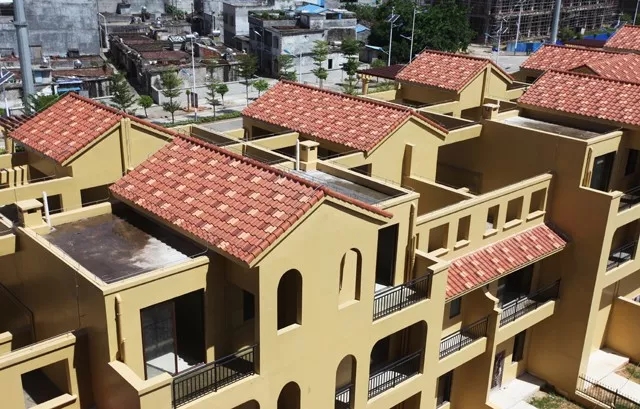 榮冠西瓦具備隔熱好、耐久性、色彩鮮艷等諸多功能和特色,造型起伏多變,富有古典的歐式風(fēng)味,鋪蓋后自然高雅,格調(diào)獨(dú)特,是各種中高檔酒店別墅、樓宇亭臺、大型商業(yè)中心、市政工程等建筑的首選屋面裝飾材料。