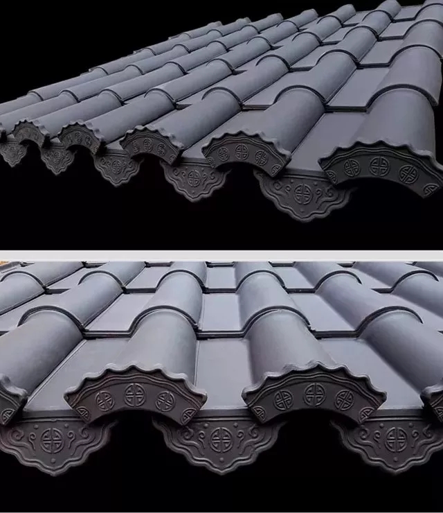 在建筑物屋頂仰瓦形成的瓦溝最下面,有一塊特制的瓦,叫做檐口瓦。它一端帶著下垂的邊兒,底瓦于檐口處,其下端有下垂之圓尖形瓦片,蓋房頂時(shí)放在檐口,在燒制之前,會(huì)被繪上植物或者花卉的線條。