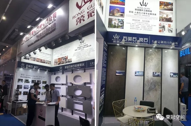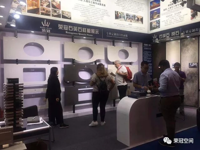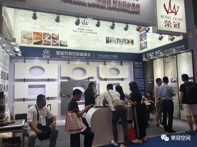 榮冠石材展位以白色作為主背景,搭配藍(lán)黑色邊框,在整個(gè)展區(qū)尤為顯眼。榮冠石材專業(yè)定制出口臺(tái)面板,以匠心為客戶提供優(yōu)質(zhì)的產(chǎn)品和服務(wù)。本次展位除了展示我司最新石材精品和臺(tái)面板加工工藝外,還重點(diǎn)突出了我司人造石應(yīng)用在國(guó)內(nèi)大型商業(yè)工程中的諸多案例,展現(xiàn)出榮冠石材的品牌優(yōu)勢(shì)與技術(shù)實(shí)力。