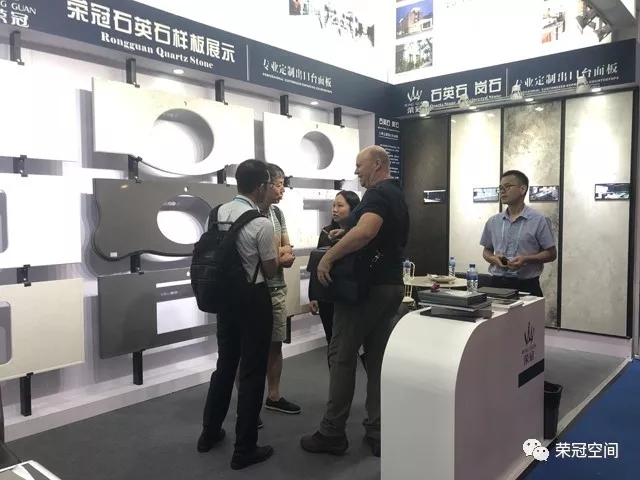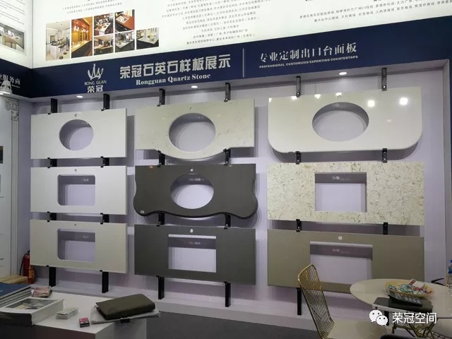 作為人造石工程專業(yè)服務(wù)商,榮冠石材擁有十多年積累的豐富生產(chǎn)加工經(jīng)驗(yàn),并使用國(guó)外引進(jìn)的先進(jìn)生產(chǎn)設(shè)備,確保產(chǎn)品性能穩(wěn)定,工藝品質(zhì)卓越。在本屆廣交會(huì)中,榮冠石材展示出臺(tái)面板的設(shè)計(jì)加工各個(gè)流程,并通過(guò)臺(tái)面板異型切割開孔組合等精細(xì)工藝展示,體現(xiàn)出榮冠在精加工方面的雄厚實(shí)力,獲得了觀展客商的一致好評(píng)。