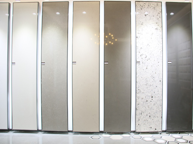 榮冠展廳占地160多平方米,分為榮冠崗石●石英石與榮冠陶瓦兩個體驗模塊。無論是店面門頭、形象臺、大廳、樣板間展示區都經過合理的規劃,讓進入展廳的客戶置身于榮冠的極致空間藝術世界,沉浸于榮冠簡約大氣、時尚典雅的氣質中。同時兼顧滿足各層次客戶的個性化裝修需求,展廳設有選材體驗館,陳列出各個系列的產品樣板,大家可進店挑選板材。