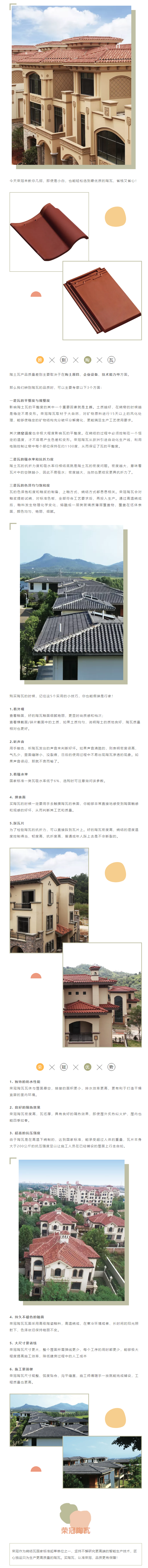 眾多的屋面瓦材料中,陶瓦以其極致的防水性能、出色的隔熱效果、超長的使用壽命脫穎而出,但不同廠家的陶瓦質量也各不相同,相信大家一輩子建不了多少次房子,更有人不到屋頂設計階段都不知道陶瓦是什么,難免會迷茫或者挑花了眼。