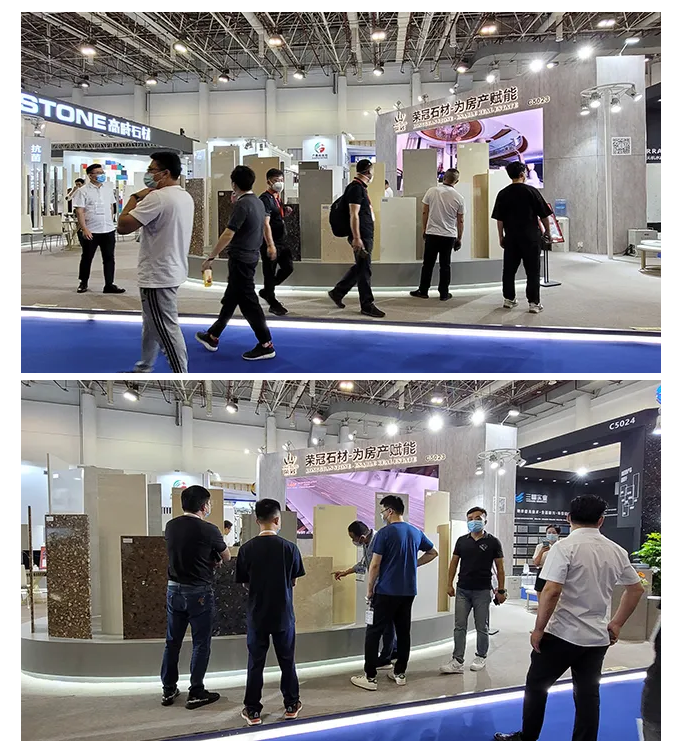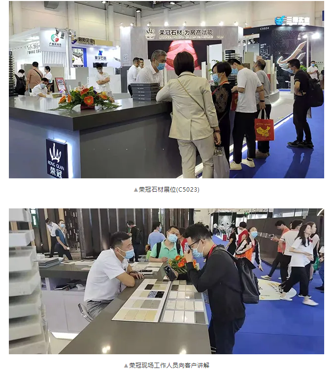 5月18日-21日在廈門國際石材展覽會,我司以「榮冠石材為房產賦能」作為參展主題,攜熱銷石材產品精彩亮相,向參展觀眾展現人造石材的非凡魅力,引得眾多客商紛紛駐足觀看、咨詢。
