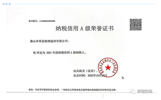 榮冠公司一直以來嚴格遵守國家法律法規,依法納稅,不斷加強對稅法及政策的深入學習,不斷完善企業稅務工作的管理體系。我公司能夠獲得納稅信用A級,是稅務機關對我公司依法納稅、誠信經營、積極履行社會責任的高度肯定,也是對我公司稅務管理工作的高度認可。