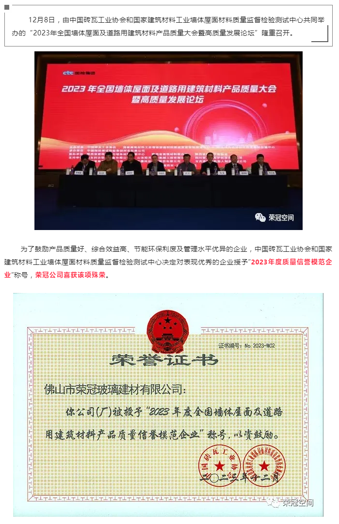 12月8日,由中國磚瓦工業協會和國家建筑材料工業墻體屋面材料質量監督檢驗測試中心共同舉辦的“2023年全國墻體屋面及道路用建筑材料產品質量大會暨高質量發展論壇”隆重召開。